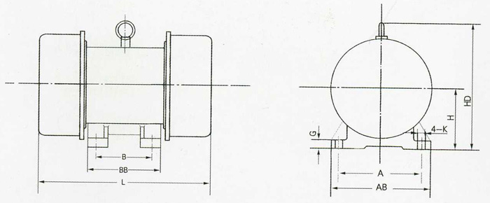 YZU型糧機(jī)專(zhuān)用振動(dòng)電機(jī)技術(shù)參數(shù)及安裝尺寸